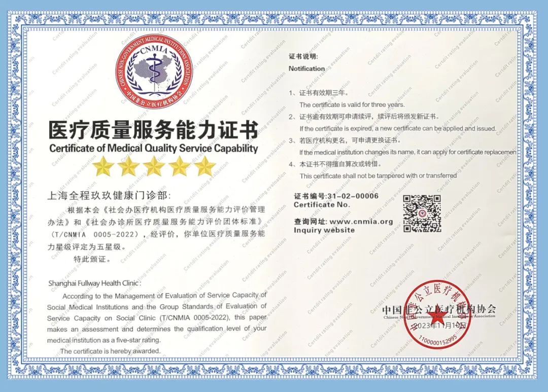 近期,上海鵬欣集團(tuán)旗下上海全程玖玖健康門診部接受了中國非公醫(yī)療機(jī)構(gòu)協(xié)會(huì)評價(jià)專家組的信用與能力的續(xù)評考核,收獲了一致認(rèn)可!喜獲中國非公立醫(yī)療機(jī)構(gòu)協(xié)會(huì)“社會(huì)信用評價(jià)AAA級機(jī)構(gòu)”及“醫(yī)療質(zhì)量服務(wù)能力五星級醫(yī)療機(jī)構(gòu)”兩項(xiàng)殊榮!